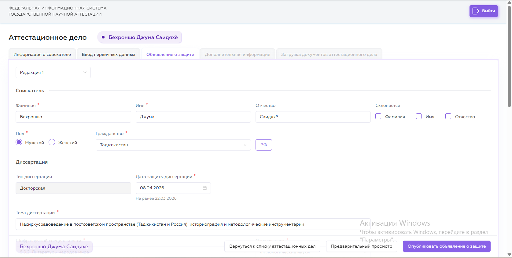 - Объявление о защите: (Дата публикации: 17.12.2025)