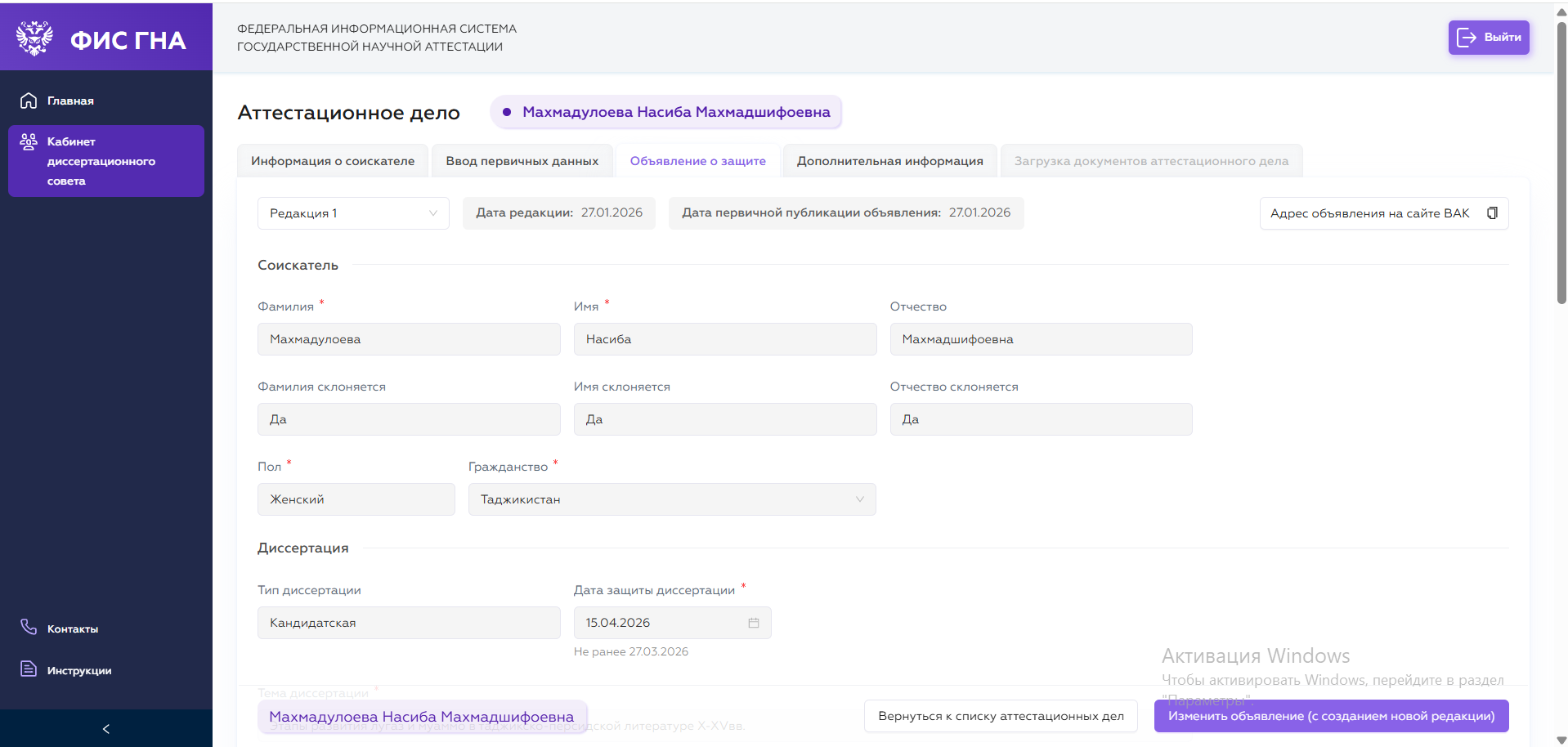 - Объявление о защите: (Дата публикации: 22.12.2025)